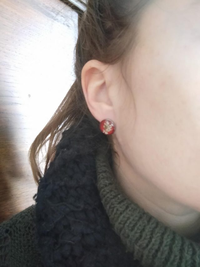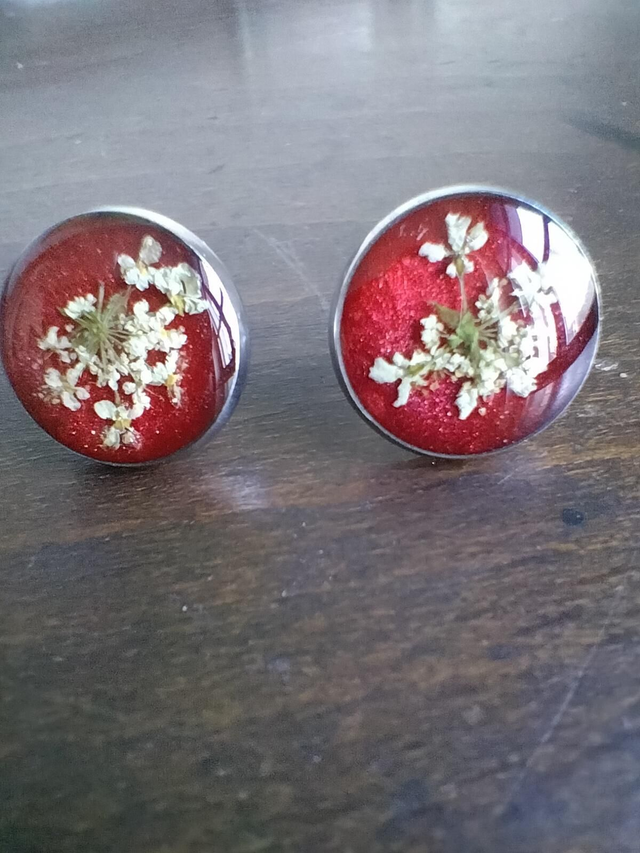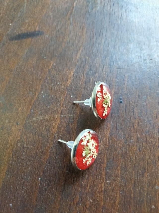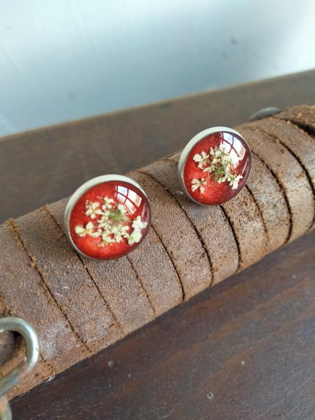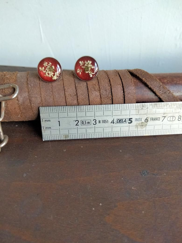 Boucles d'oreilles puces en acier inoxydable avec insertion d'une fleur séchée