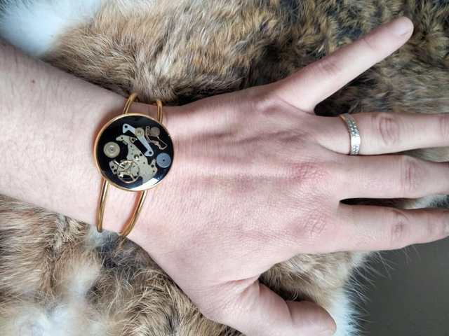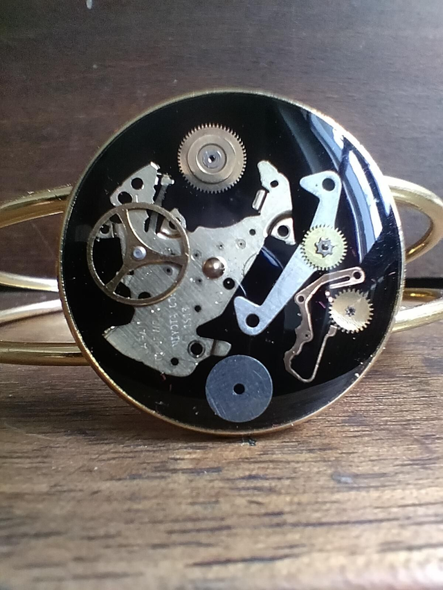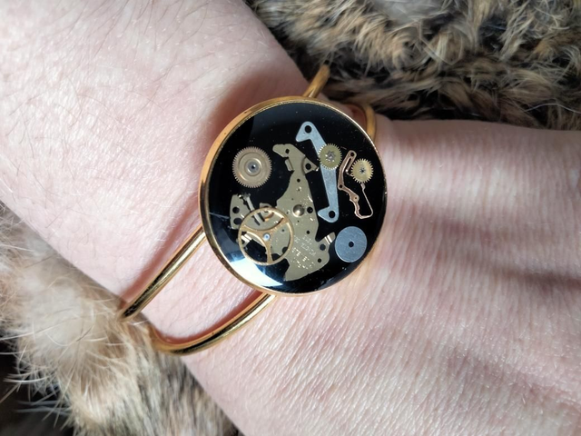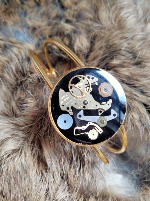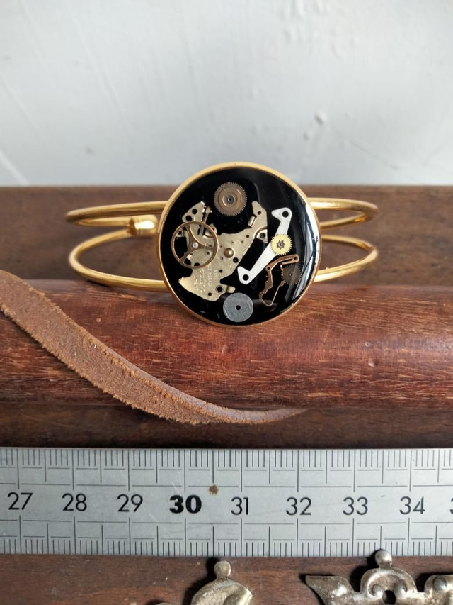 Bracelet manchette en laiton couleur or inspiration steampunk