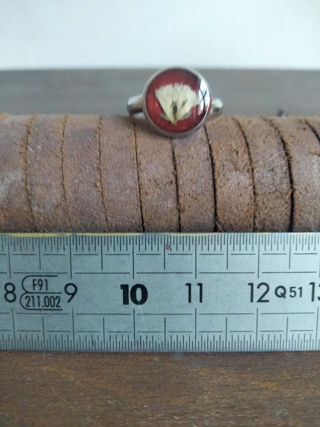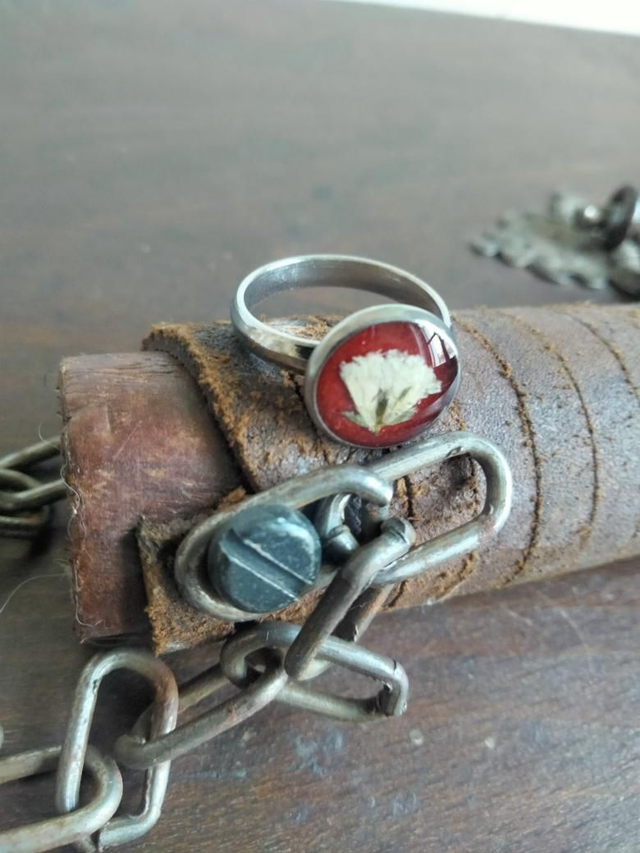 Bague réglable en acier inoxydable avec insertion d'une fleur séchée