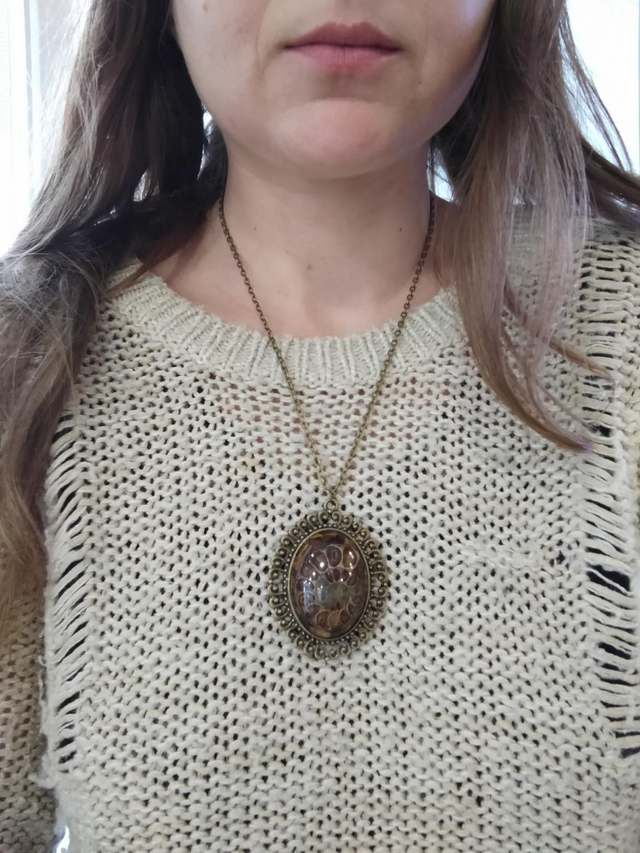 Monté sur chaine sautoir longueur 80cm couleur bronze en acier inoxydable.