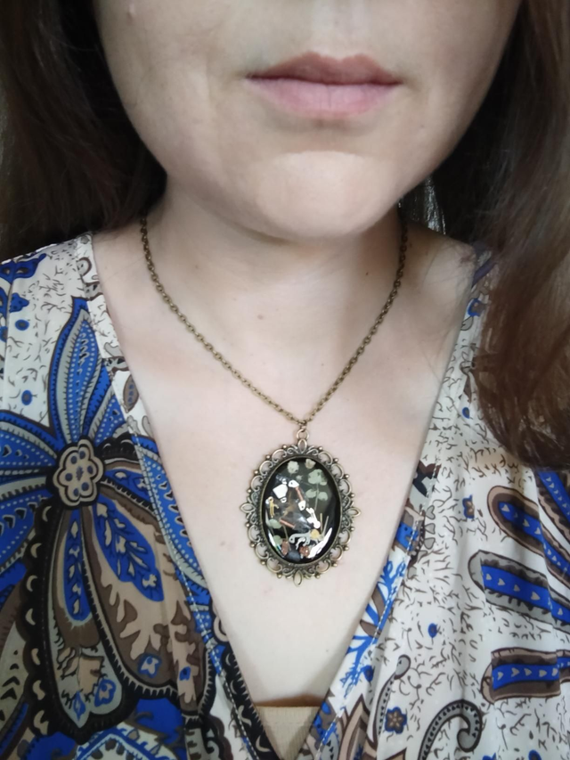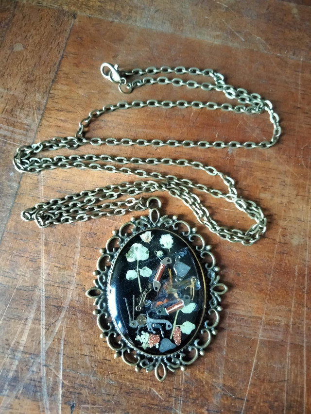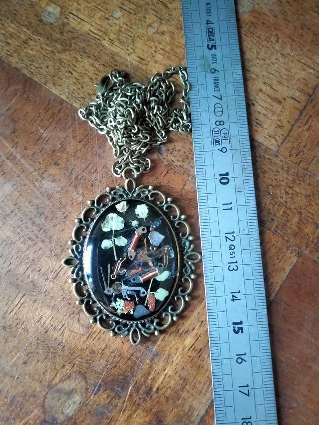 Monté sur chaine couleur bronze en alliage de fer longueur 80cm.